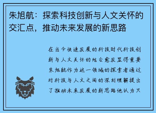 朱旭航:探索科技创新与人文关怀的交汇点,推动未来发展的新思路