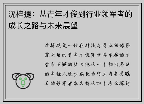 沈梓捷:从青年才俊到行业领军者的成长之路与未来展望